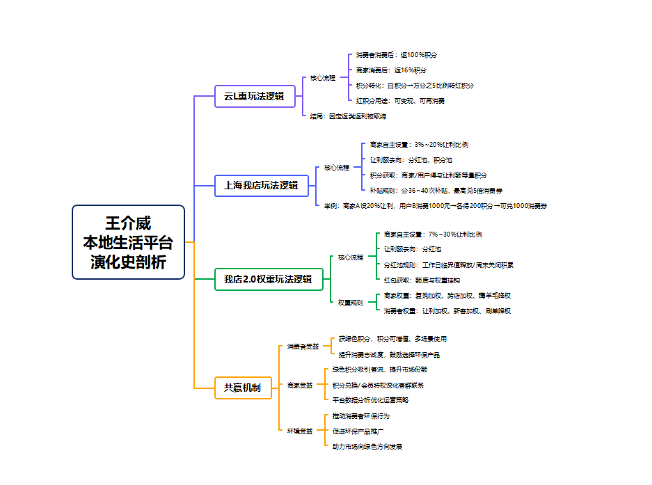 梳理本地生活平台的演化历程,王介威老师指出,行业的终极方向必然是从三方博弈走向生态共赢。早期模式中,平台靠返利吸引流量,商家承担高额成本,消费者追求短期利益,三方处于零和博弈的状态;而随着模式的迭代,共赢的核心逻辑逐渐清晰,即通过合理的规则设计,让平台、商家、消费者甚至社会环境都能从生态中受益。