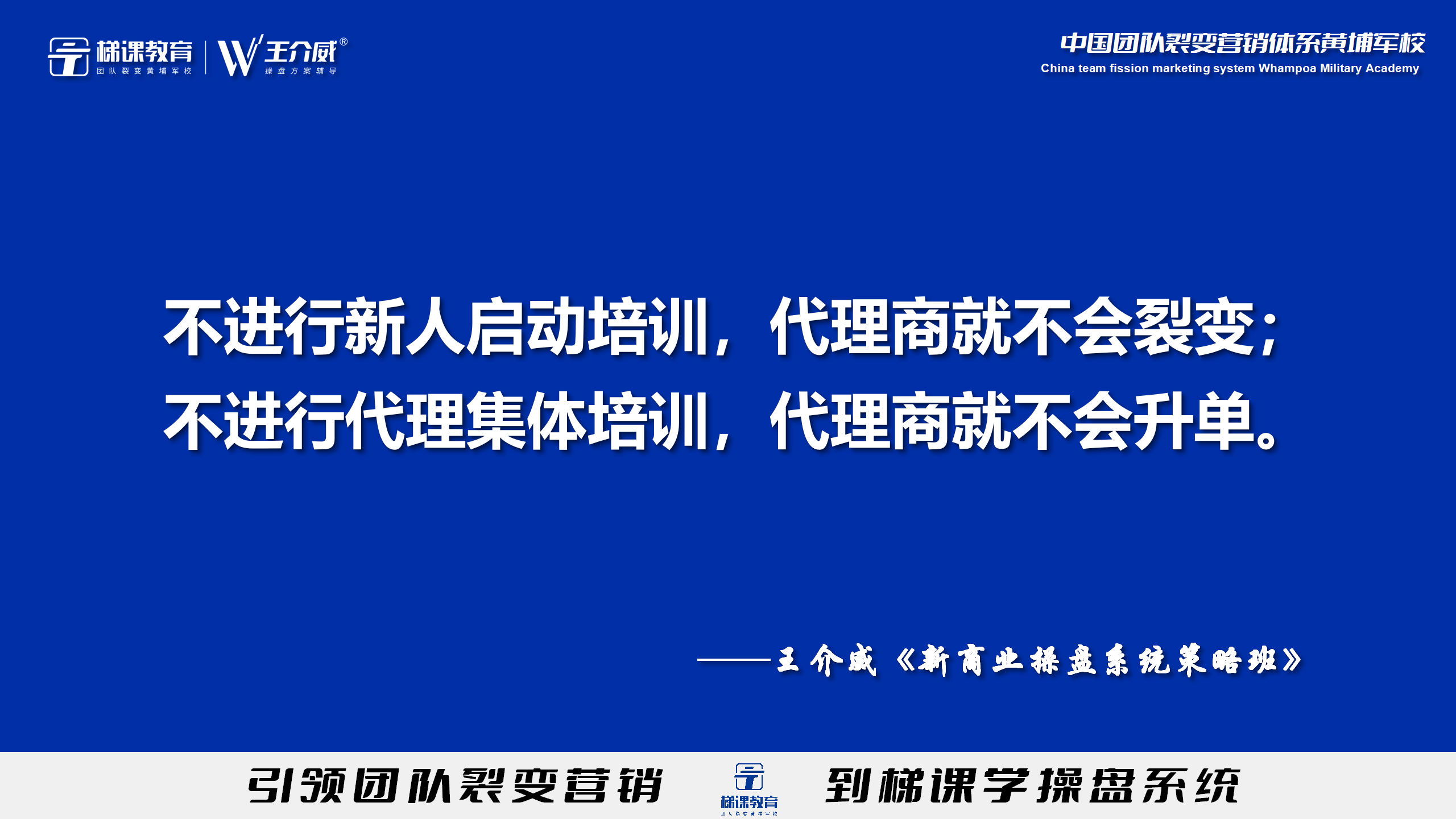 深耕商业操盘领域多年的王介威老师一针见血地指出:“只给代理商讲产品、讲制度,就相当于给战士一把木剑上战场,完全杀不死敌人!” 真正能让代理商实现渠道裂变的,是一套系统化的新人启动培训体系——这不是可选项,而是企业渠道生存的必答题。
